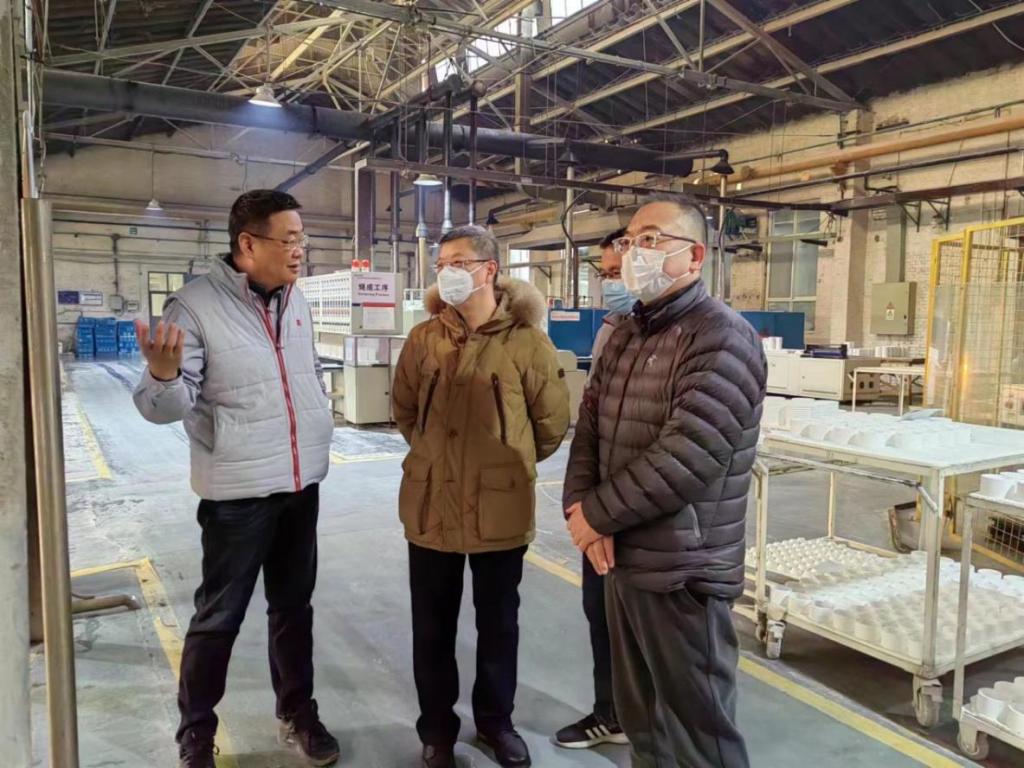 随后,一行人在来到会议室与管理团队进行沟通交流,陶瓷科技负责人阎涛介绍了子公司春节期间的生产情况,并阐述了一季度初步工作安排。袁军为结合实际指出,子公司要以白瓷自动车坯线、白瓷窑炉智能制造和扩产项目为契机进一步提高产能,灵活调整产品结构,确保内配产品市场份额,扩大外销收入和盈利能力,争取在军品和高端产品销售再上台阶。