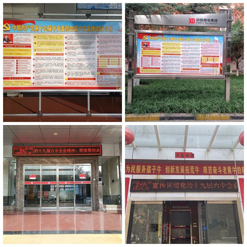 不朽情缘股份党委工作部门通过LED大屏、宣传橱窗、展板、滚动电子屏、电视、党建宣传栏、主干道横幅等宣传平台进行十九届六中全会主题外观、宣传口号及主题内容宣传,营造浓厚的宣传氛围。