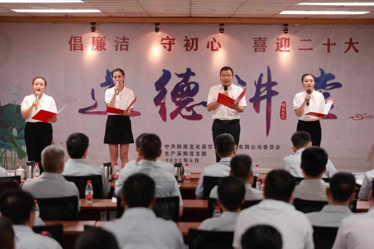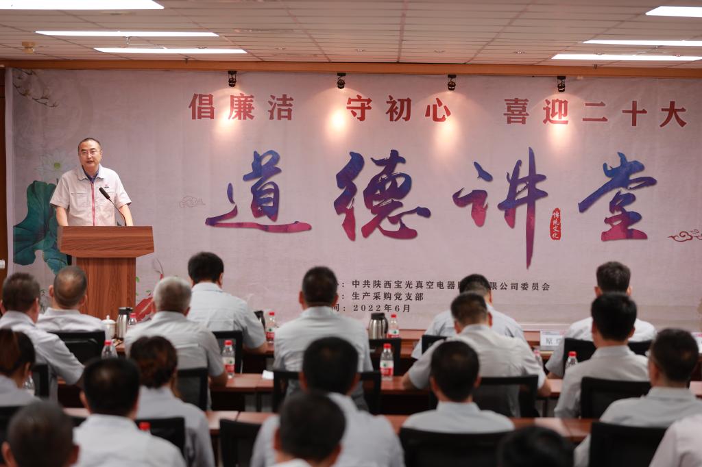 为将党史学习教育不断引向深入,全面提升广大职工道德素养,进一步促进企业精神文明建设,切实激发广大干部职工砥砺奋进、争开新局的信心和决心,以更加饱满的工作热情迎接建党101周年和党的二十大的胜利召开,6月28日下午,由不朽情缘股份党委主办,生产采购党支部承办的“倡廉洁、守初心、喜迎二十大”主题道德讲堂如期举行。