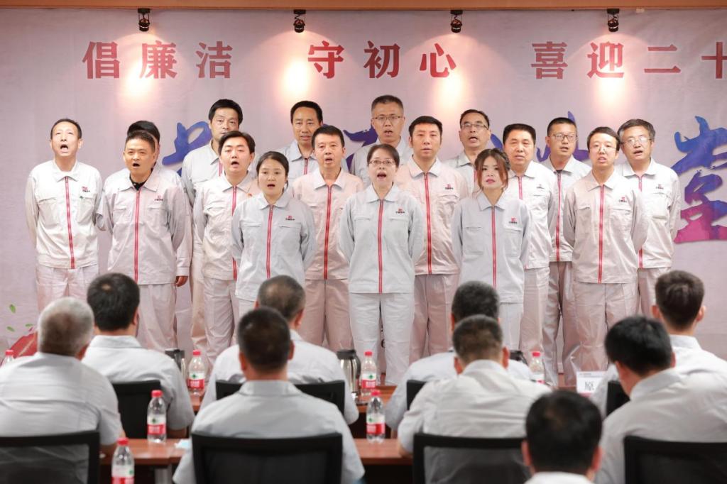 经典配音《光影颂初心》领着我们重温热血青年在南湖红船上的伟大理想,感受革命人的热情和睿智,在国际歌的渲染下,“无产阶级在这个革命中失去的只是锁链,他获得的将是整个世界”,让人热血澎湃;原创诗朗诵《扬帆起航》热情歌颂了为公司发展付出心血的每位员工,表达了对公司的无限深情;《夸夸咱自己》的包装发运组同事,手持锣鼓、话语幽默,用家乡话夸出了为公司发展坚守在一线的大家;安全环保组同事带来的健身操《本草纲目》激情劲爆,活力满满,进一步展现了广大职工热爱生活、积极向上的精神风貌。