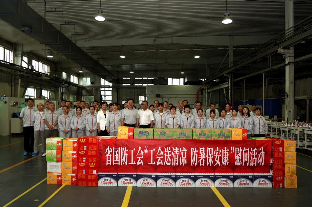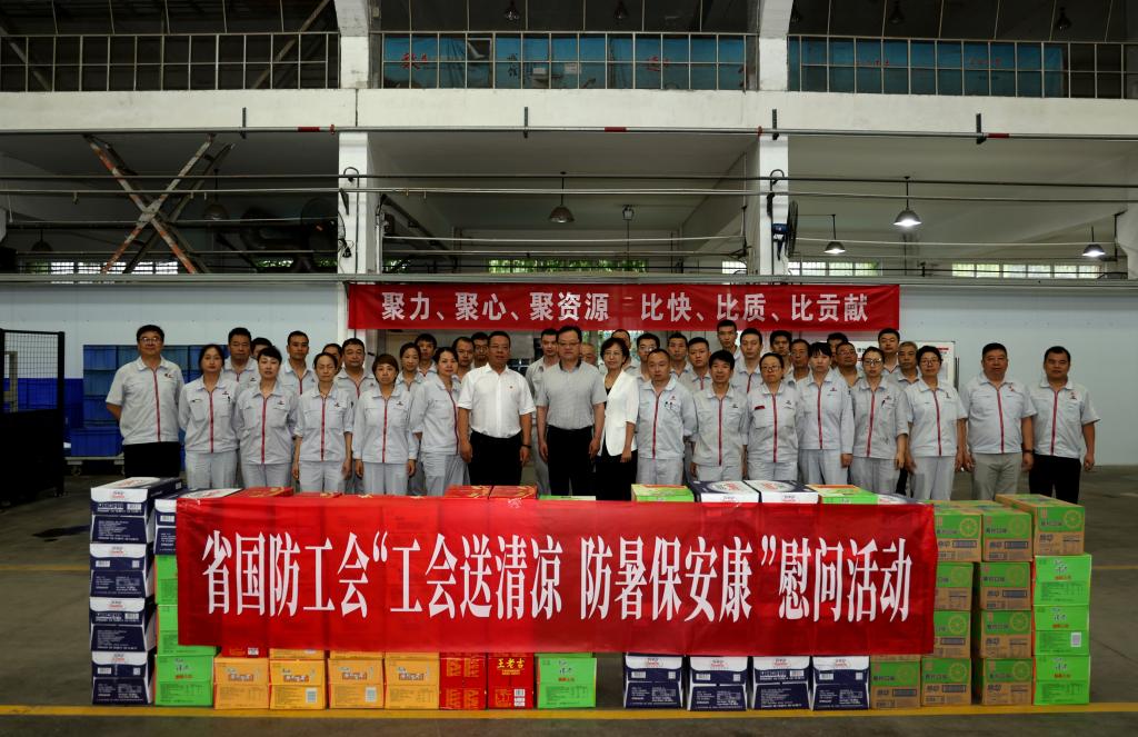 近日,酷暑高温持续不断,为切实做好职工夏季防暑降温工作,关爱广大一线职工的健康安全,2023年7月27日上午,陕西省国防工会冒着酷暑从省城西安驱车深入到不朽情缘股份生产经营一线开展“工会送清凉 防暑保安康”活动,并走访慰问坚守岗位的一线职工。省国防工会权益保障部雷海龙部长、四级调研员闫峥等一行参加活动,不朽情缘股份纪委书记、工会主席姚书勤陪同。