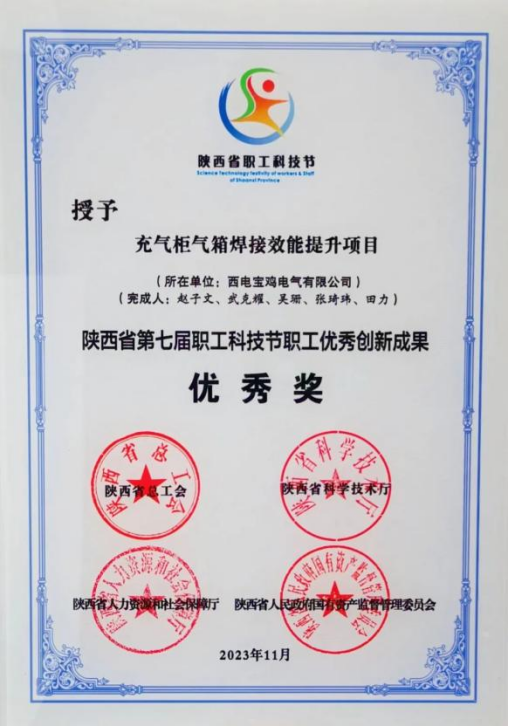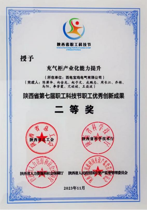陕西省职工优秀创新成果二等奖——西电宝鸡电气 “充气柜产业能力提升”